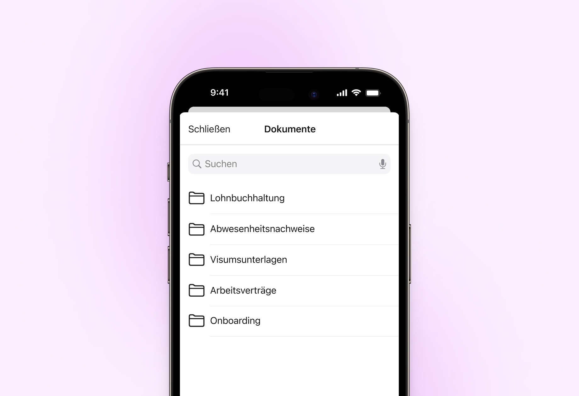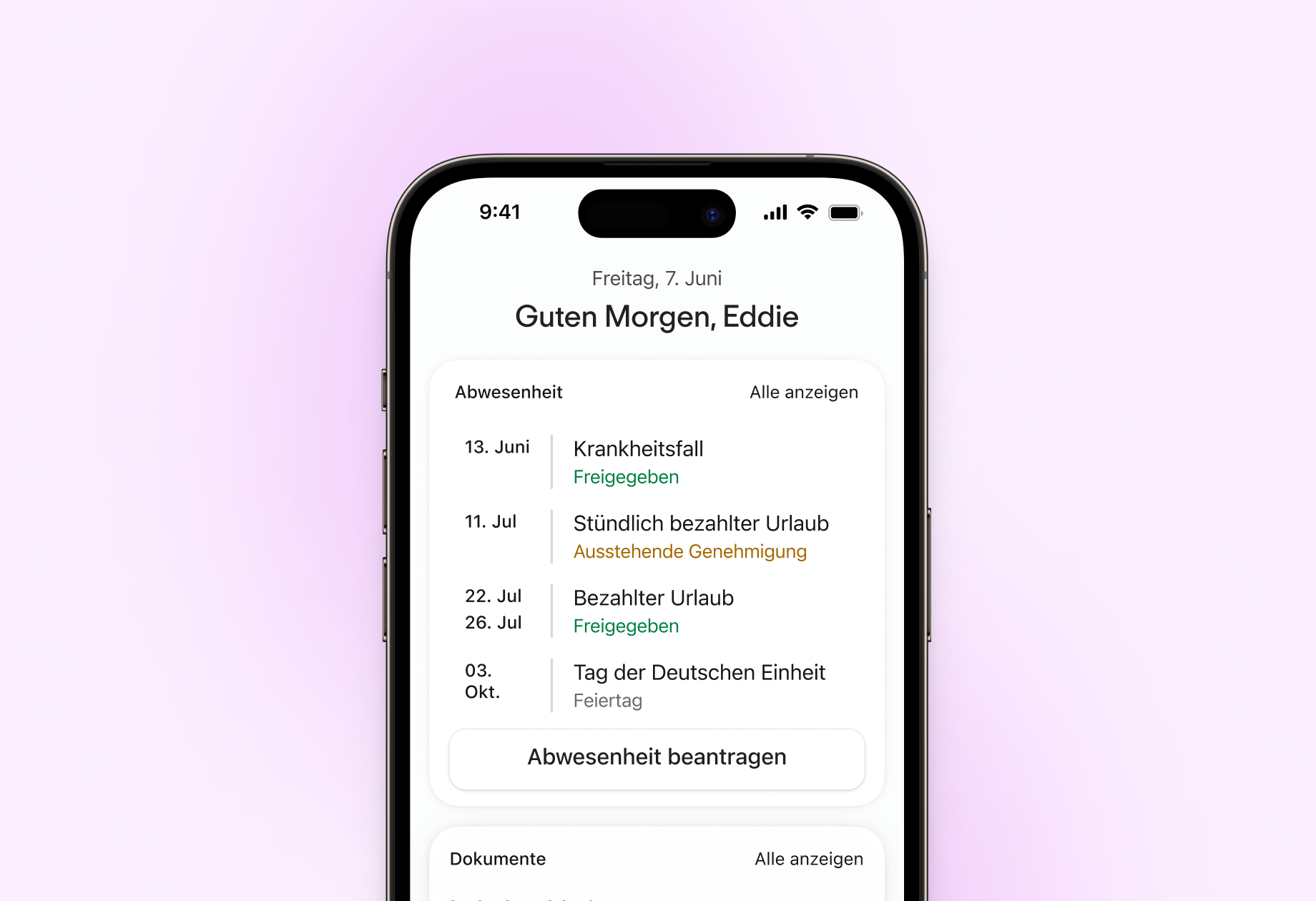 Ermöglichen Sie es Mitarbeitenden, persönliche Dokumente wie ärztliche Atteste direkt hochzuladen. Zentralisieren Sie Dokumente wie Entgeltabrechnungen, um jederzeit und überall darauf zugreifen zu können.